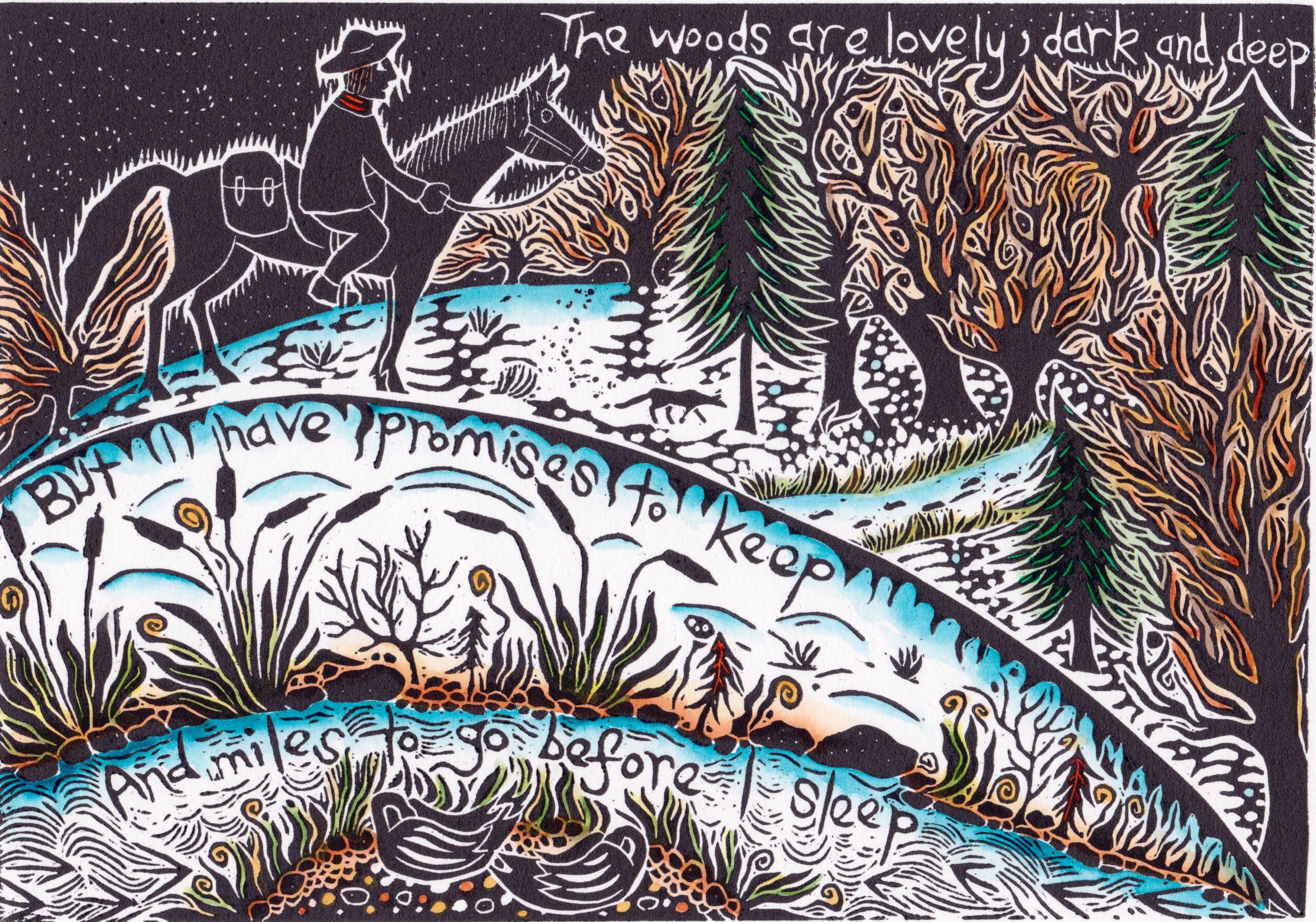 From the Robert Frost poem, Stopping by the Woods on a Snowy Evening. 22 x 15 cm.